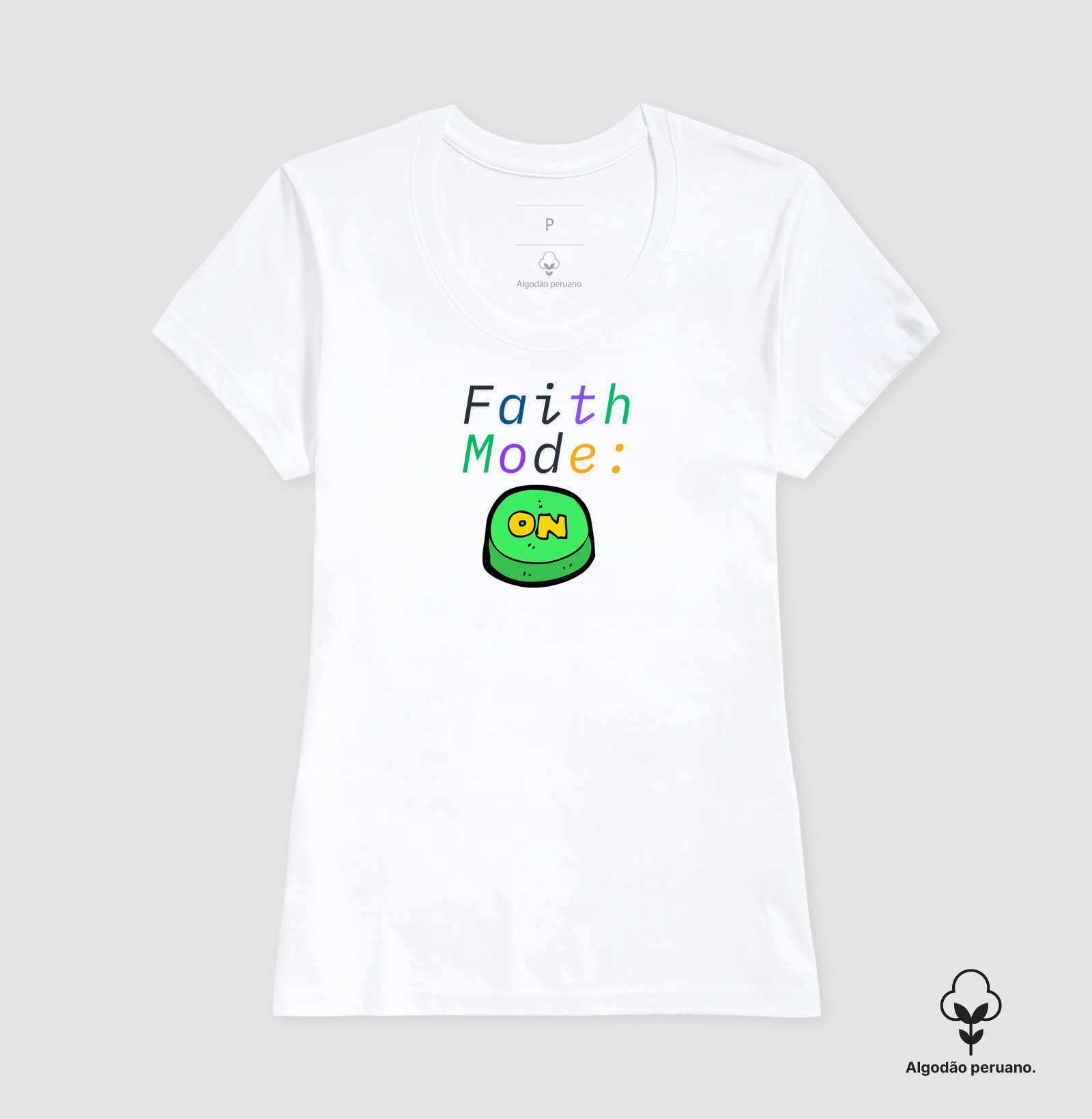 Porque viver pela fé é um estilo de vida. Sabe aquele modo ativado que muda tudo? Com essa estampa, você declara que a fé está ligada — e nada vai te parar. Em meio aos desafios, você escolhe crer, confiar e caminhar com propósito. Nossa camiseta traz qualidade de ponta: 100% algodão (incluindo algodão peruano em algumas versões), costura reforçada ombro a ombro e um caimento que valoriza seu estilo. Vista sua fé com atitude.